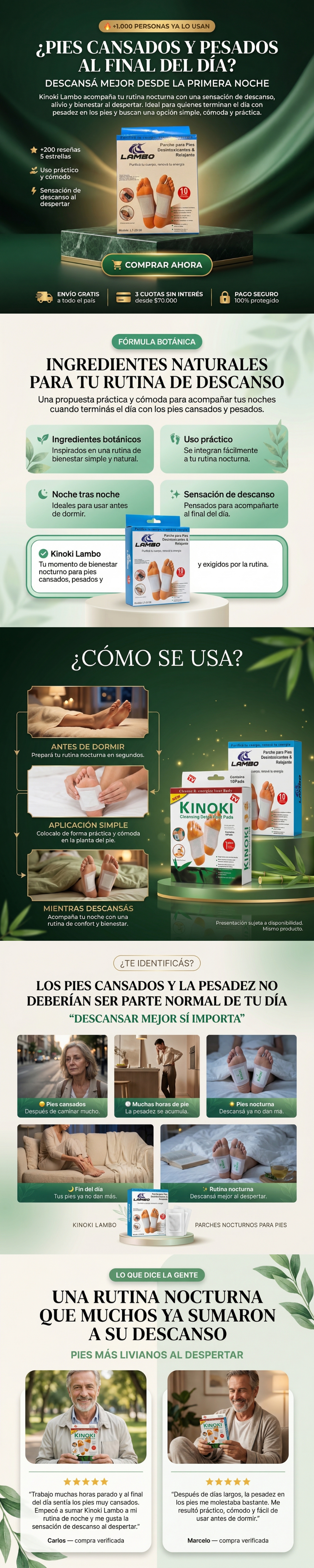 KINOKI LAMBO ® Parches nocturnos para pies cansados - Chau pesadez, hola descanso al despertar